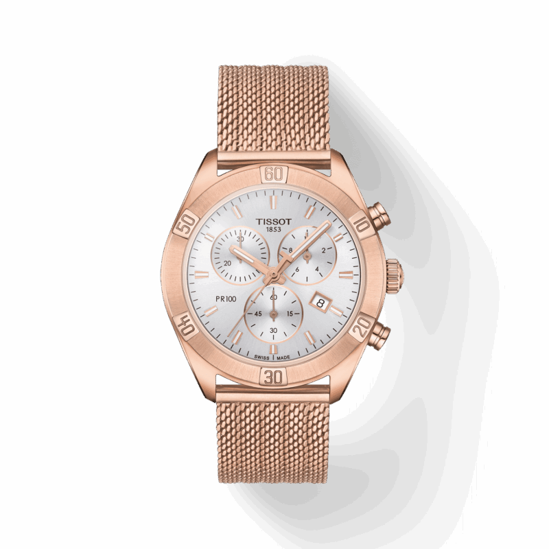 Il modello PR 100 di Tissot è un orologio classico, da indossare di frequente, adatto ad ogni occasione. L’estetica semplice ed elegante di questa collezione è particolarmente apprezzata, mentre il suo aspetto essenziale simboleggia il lusso, la qualità e lo stile classico.Questo nuovo cronografo dedicato alle donne sfoggia un’imponente cassa da 38 mm ed è disponibile in 6 diverse versioni, ovvero 6 nuovi modi di indossare un orologio sportivo ma sempre elegante e femminile.
