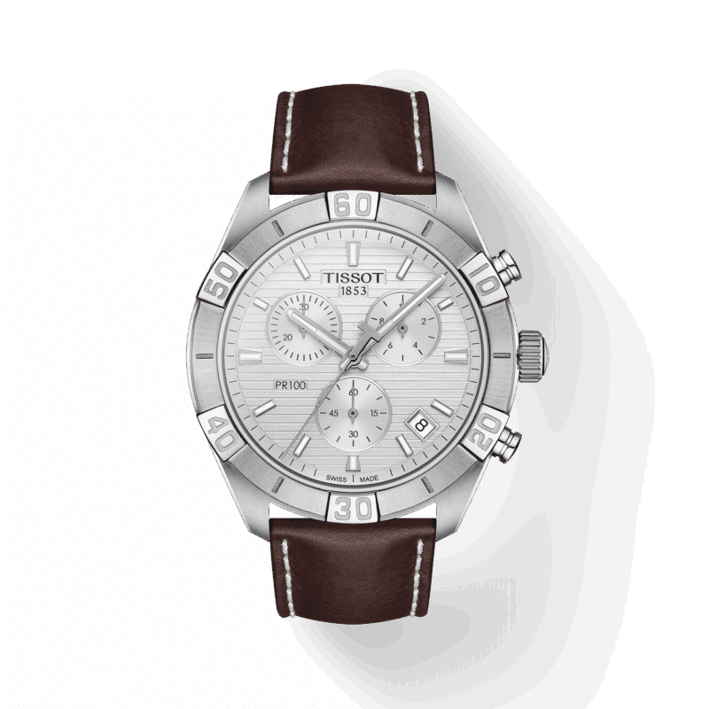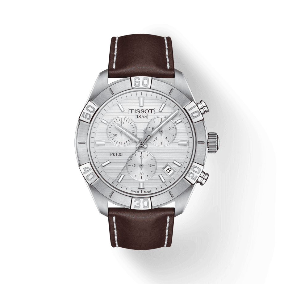 Lo scopo del Tissot PR 100 Sport Chronograph è quello di proporre un orologio sportivo e chic per il look di tutti i giorni. Presenta il volto semplice ed elegante per cui la collezione è amata. L’orologio è resistente all’acqua fino a una pressione di 10 bar (100 m/330 piedi) e il quadrante con indici con materiale luminescente che aggiungono un tocco elegante e originale a questo segnatempo.