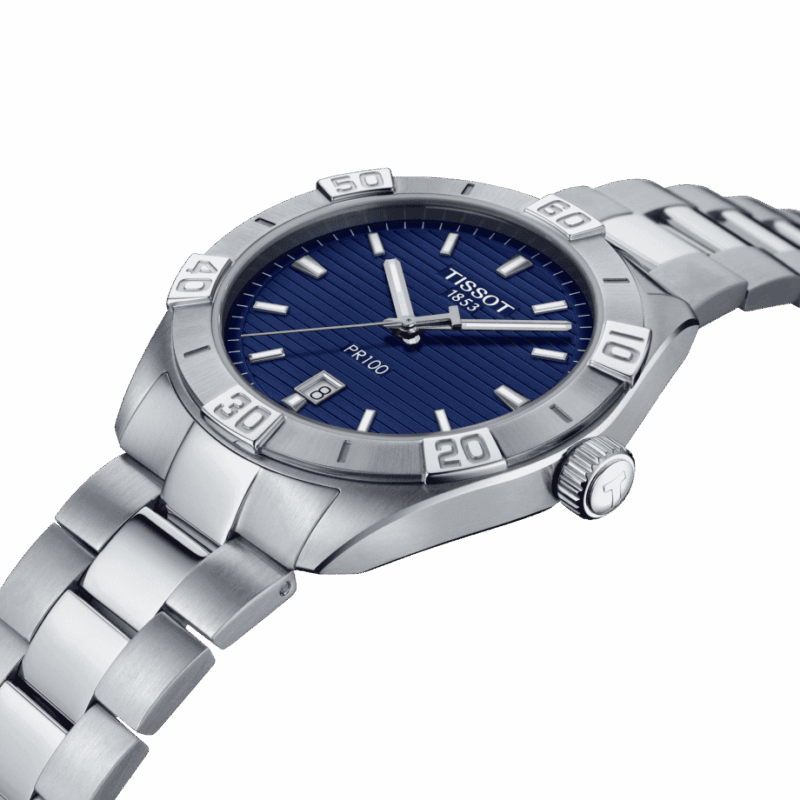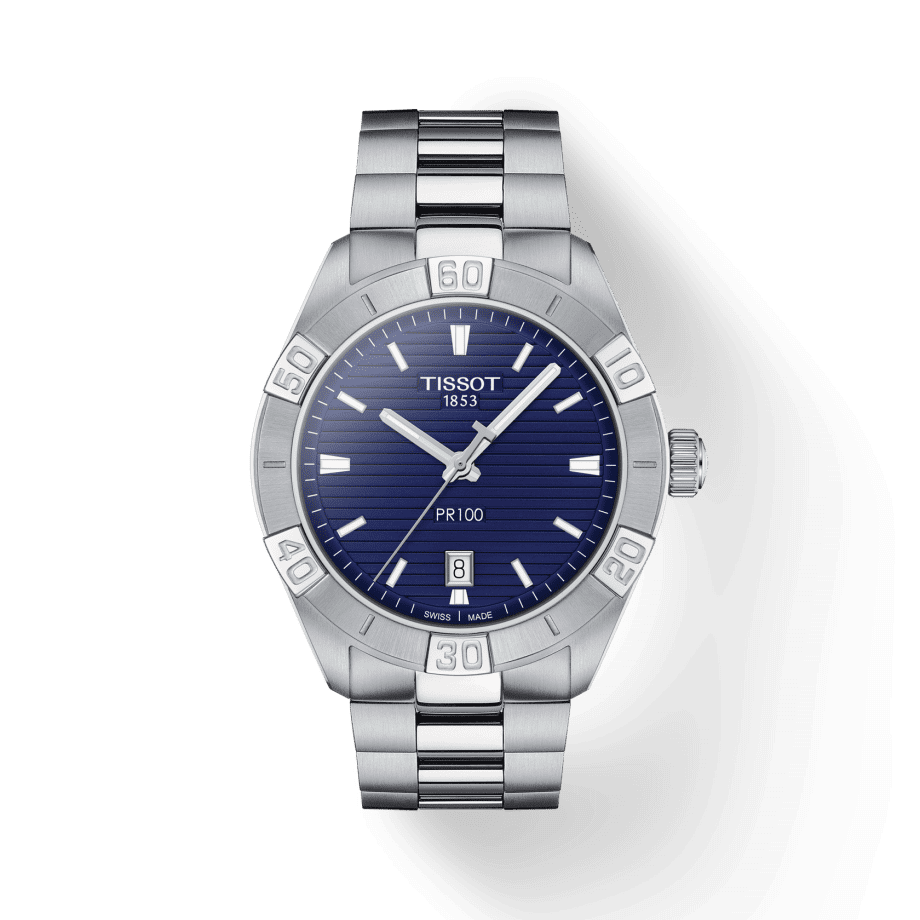 Lo scopo del Tissot PR 100 Sport Chronograph è quello di proporre un orologio sportivo e chic per il look di tutti i giorni. Presenta il volto semplice ed elegante per cui la collezione è amata. L’orologio è resistente all’acqua fino a una pressione di 10 bar (100 m/330 piedi) e il quadrante con indici con materiale luminescente che aggiungono un tocco elegante e originale a questo segnatempo.