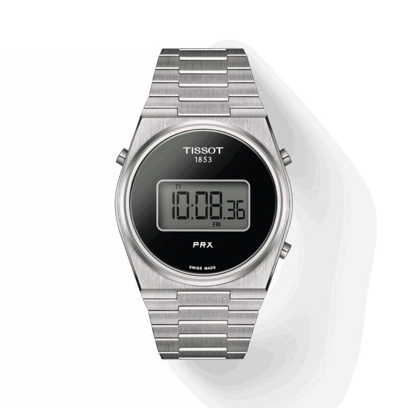 Il Tissot PRX Digital, un mix armonioso dell’iconico design PRX del 1978 e del Tissot Digital Quartz (Calibr o4012), mostra brillantemente un ibrido di epoche passate e influenze digitali. Unendo perfettamente l’estetica retrò con un tocco contemporaneo, è il segnatempo per i pionieri di oggi. Il PRX Digital, disponibile nelle opzioni da 35 mm e 40 mm e in una varietà di colori, soddisfa tutti i polsi, mentre la moltitudine di funzioni – doppio fuso orario, giorno-data, cronografo e altro ancora – soddisfa tutte le esigenze. Racchiusi da una cassa resistente all’acqua fino a 100 metri e corredati da un bracciale satinato e una chiusura pieghevole a tripla lama, questi segnatempo sono realizzati sia per la resistenza che per il comfort. La collezione Tissot PRX Digital simboleggia un viaggio nel tempo, un omaggio al passato e un brindisi al futuro.