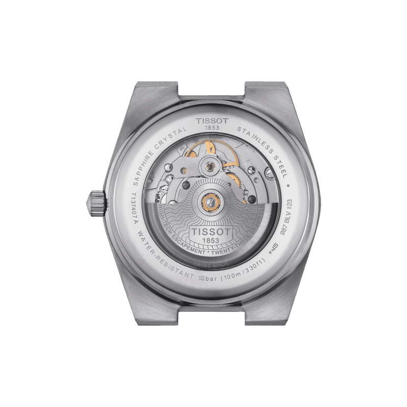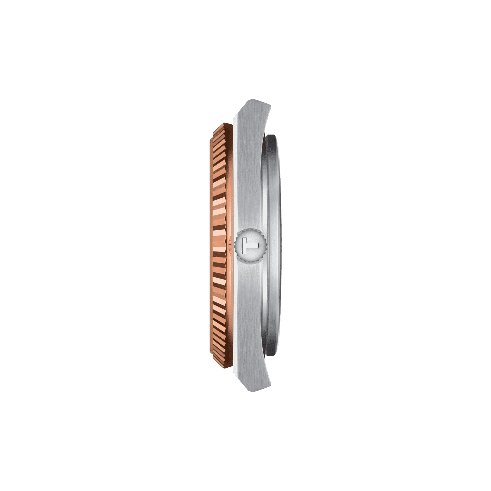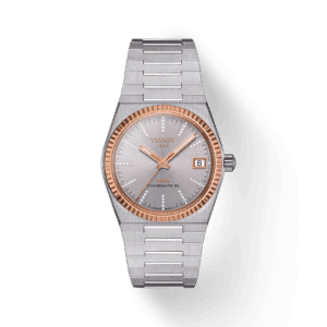 Nel 1978, Tissot ha creato un modello al quarzo con cassa sottile, indici stretti e bracciale in acciaio. La sua ampia ansa orizzontale, tipica dell’epoca, era perfettamente integrata nella cassa piatta a forma di tonneau. Pochi anni dopo, Tissot registrò il nome PRX. “PR” sta per “preciso” e “robusto”. La “X” sta per il numero romano dieci e per la pressione di 10 bar, che corrisponde ad una profondità di 100 metri, fino alla quale l’orologio è impermeabile. Nel 2021 Tissot lancia il nuovo PRX come moderna interpretazione del modello precedente. La cassa in acciaio inossidabile 316L del Tissot PRX ha un diametro di 40 mm. Ha una forma leggermente tonneau con una lunetta stretta e rotonda. Ai lati, finiture spazzolate verticalmente, arrotondate si alternano a sfaccettature lucide. Il Tissot PRX Powermatic 80 acciaio e oro 18 carati è dotato di una ghiera in oro rosa 18 carati che, insieme agli indici e alle lancette dello stesso colore, creano un piacevole contrasto con il quadrante blu. Le lancette del Tissot PRX Powermatic 80 acciaio e oro 18 carati sono dotate di un rivestimento SuperLumiNova® e sono posizionate una sopra l’altra con uno spazio molto piccolo. Ciò consente di avvicinare il quadrante al vetro dell’orologio. L’effetto ottico ottenuto dai designer Tissot fa apparire la cassa dell’orologio ancora più piatta e sottile di quanto non sia in realtà. Il Tissot PRX Powermatic 80 acciaio e oro 18 carati ha un vetro zaffiro antigraffio con rivestimento antiriflesso su entrambi i lati e un fondello in vetro minerale. Il tuo movimento automatico Swiss Made con una riserva di carica fino a 80 ore è dotato di una molla a spirale Nivachron, nota per l’eccellente sicurezza del campo magnetico. L’orologio ha un bracciale in acciaio inossidabile 316L.