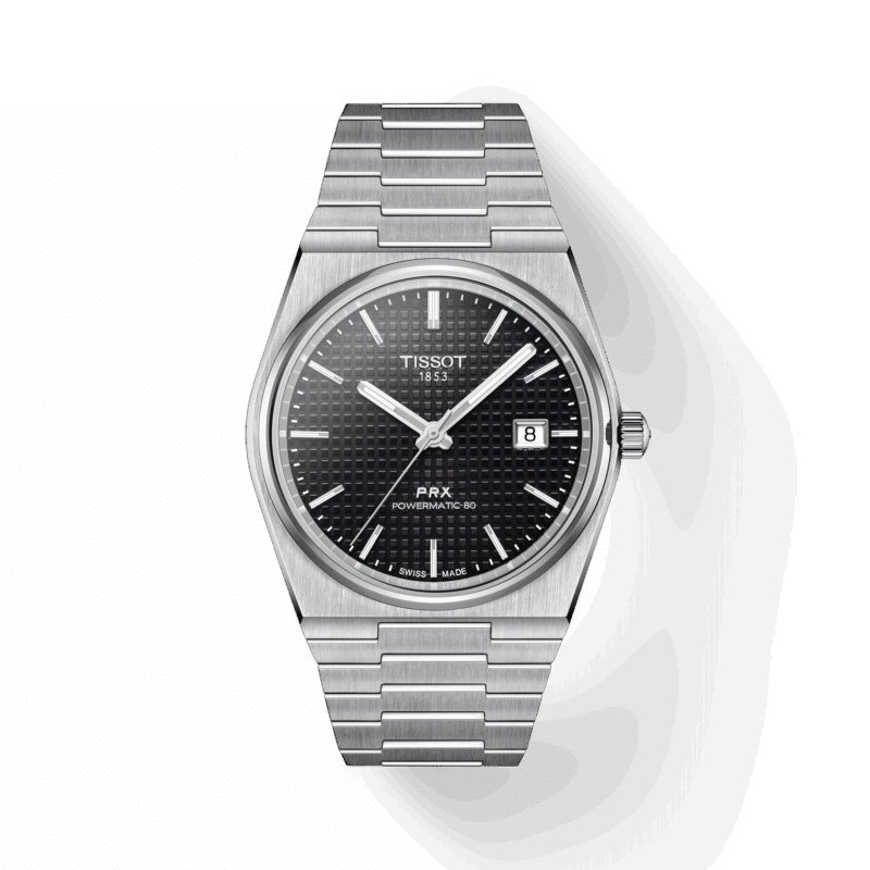 Tissot ripropone un design iconico della fine degli anni ’70, con cassa e bracciale integrati. La cassa del Tissot PRX Powermatic 80 misura 40 mm di diametro. Ha una linea leggermente a botte e ospita una lunetta liscia, sottile e rotonda. Il movimento del Prx automatico è un Tissot Powermatic 80 che offre 80 ore riserva di carica.
