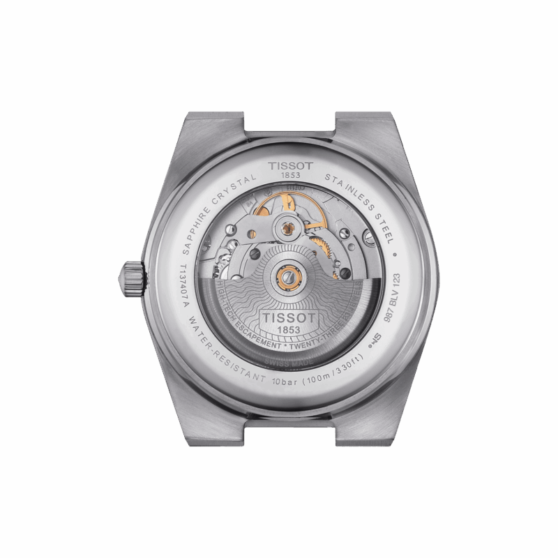 Tissot ripropone un design iconico della fine degli anni ’70, con cassa e bracciale integrati. La cassa del Tissot PRX Powermatic 80 misura 40 mm di diametro. Ha una linea leggermente a botte e ospita una lunetta liscia, sottile e rotonda. Il movimento del Prx automatico è un Tissot Powermatic 80 che offre 80 ore riserva di carica.
