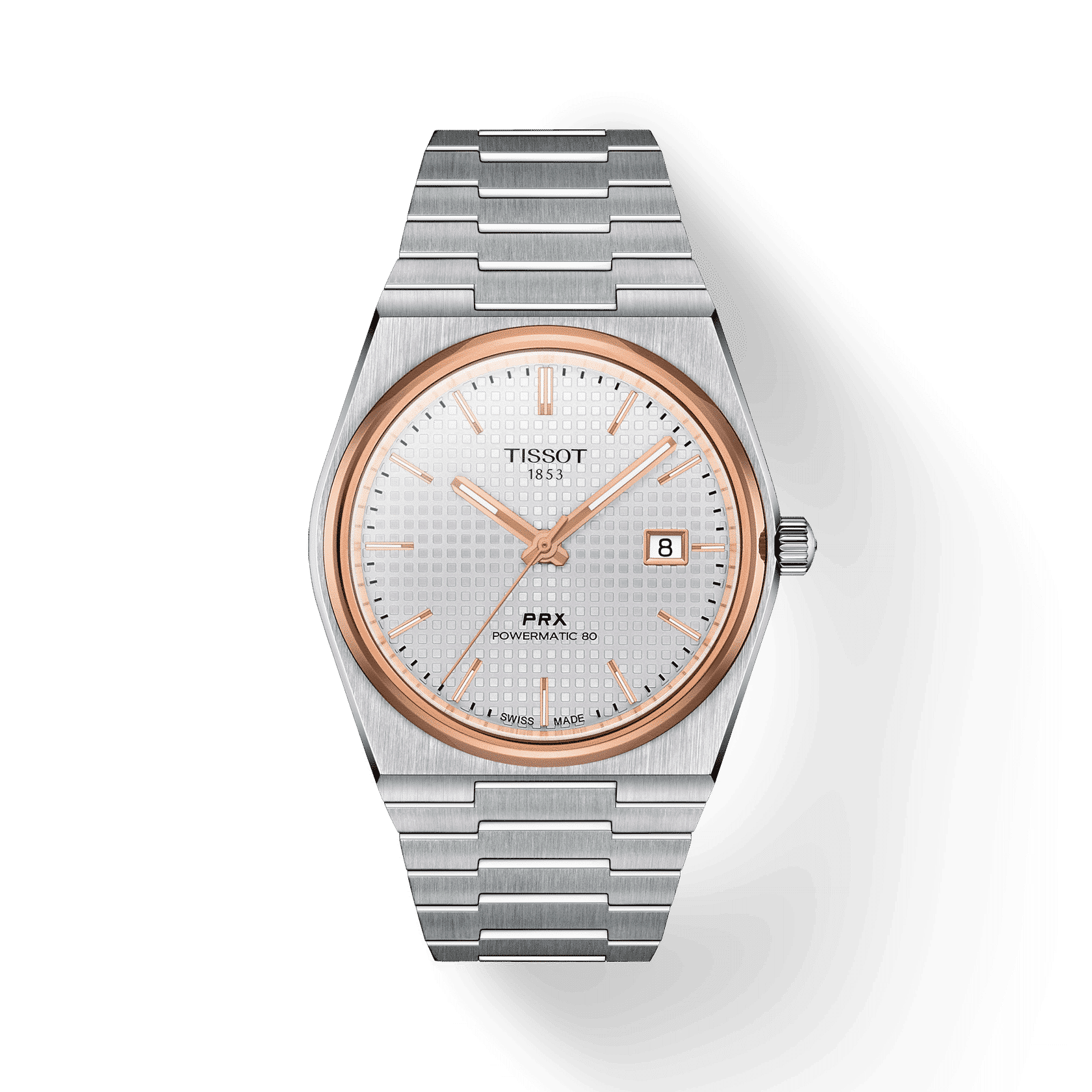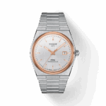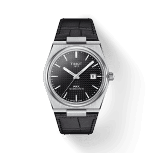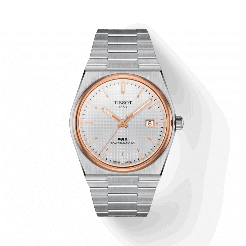 Tissot ripropone un design iconico della fine degli anni ’70, con cassa e bracciale integrati. La cassa del Tissot PRX Powermatic 80 misura 40 mm di diametro. Ha una linea leggermente a botte e ospita una lunetta liscia, sottile e rotonda. Il movimento del Prx automatico è un Tissot Powermatic 80 che offre 80 ore riserva di carica.