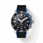 il massimo per gli appassionati di mare , sia esteticamente che tecnicamente, il cronografo Tissot Seastar 1000 incarna stile e prestazioni senza compromessi. Perfettamente affidabile fino a una pressione di 30 bar (300 m), è la prova che un orologio sportivo subacqueo e un cronografo possono conciliarsi in un unico oggetto. Il tema delle immersioni è onnipresente con elementi come una lunetta unidirezionale in alluminio, lancette e indici luminescenti. Infine, la collezione Tissot Seastar 1000 offre una moltitudine di scelte di cinturini compatibili.