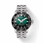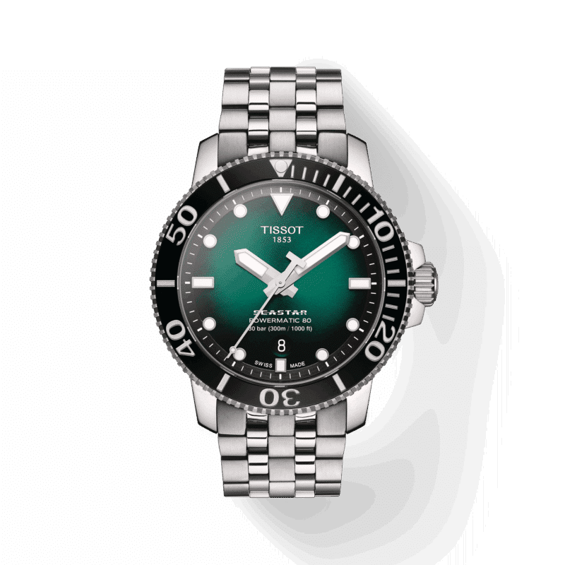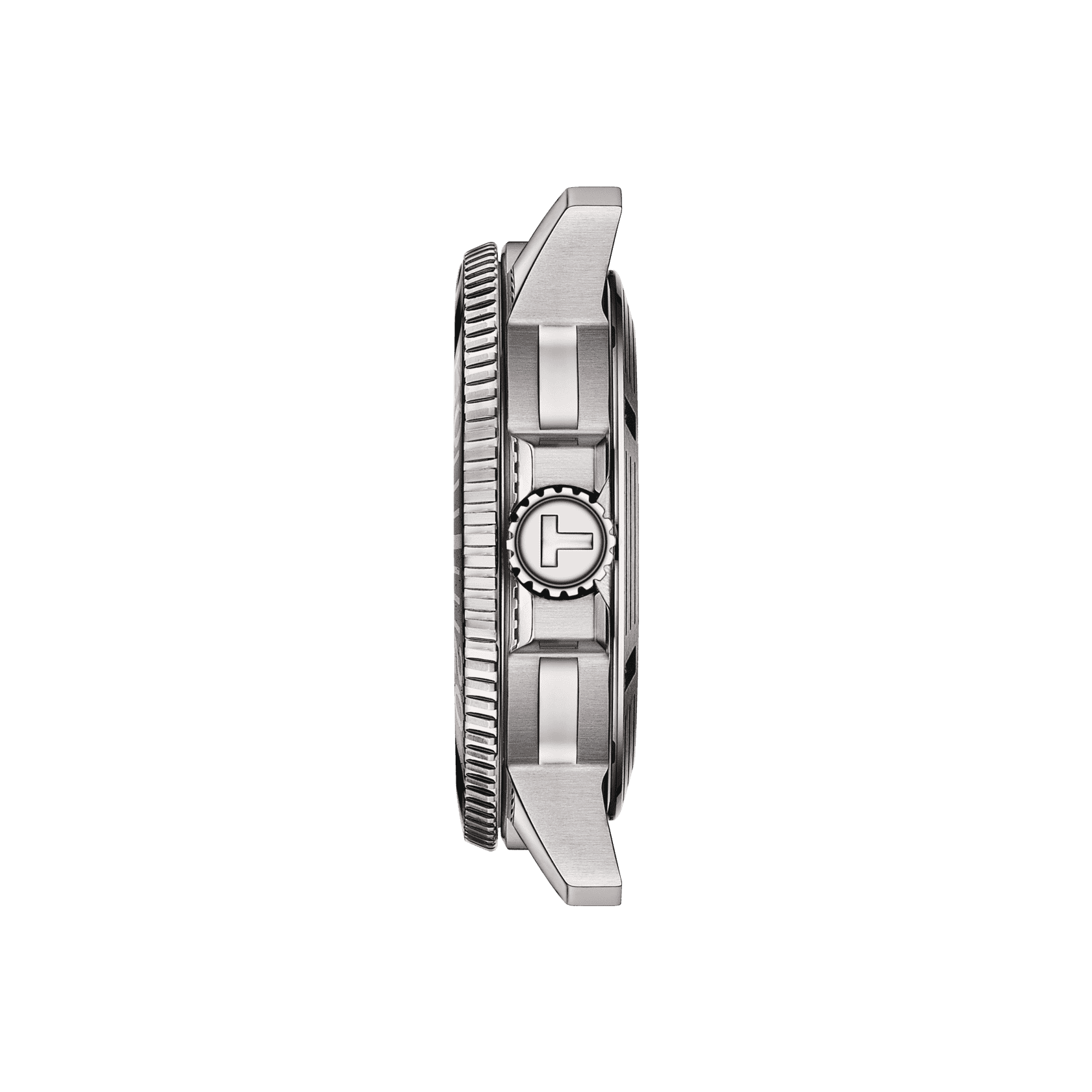 • Il Tissot Seastar 1000 è l’orologio per gli amanti del mare per eccellenza grazie all’elevata impermeabilità fino a 30 bar (300 m/1.000 ft), al binomio fondello e corona a vite e ad una lunetta unidirezionale in ceramica. Il modello monta un movimento automatico.