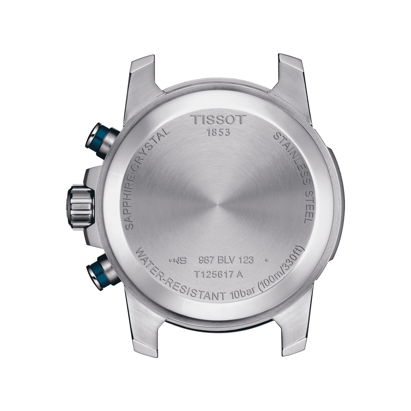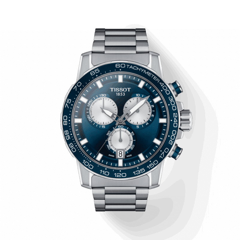 Il Tissot Supersport Chrono ha linee rette e spigoli vivi con un design audace che conferisce una forte personalità alla cassa da 45,5 mm. Il quadrante con i suoi grandi indici con SuperLuminova® e le anse asimmetriche danno un potente effetto 3D, un aspetto dinamico e consente estrema leggibilità anche in condizioni di oscurità.