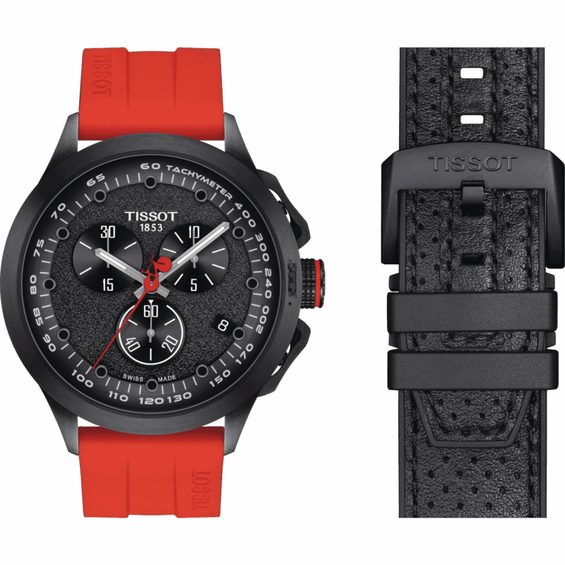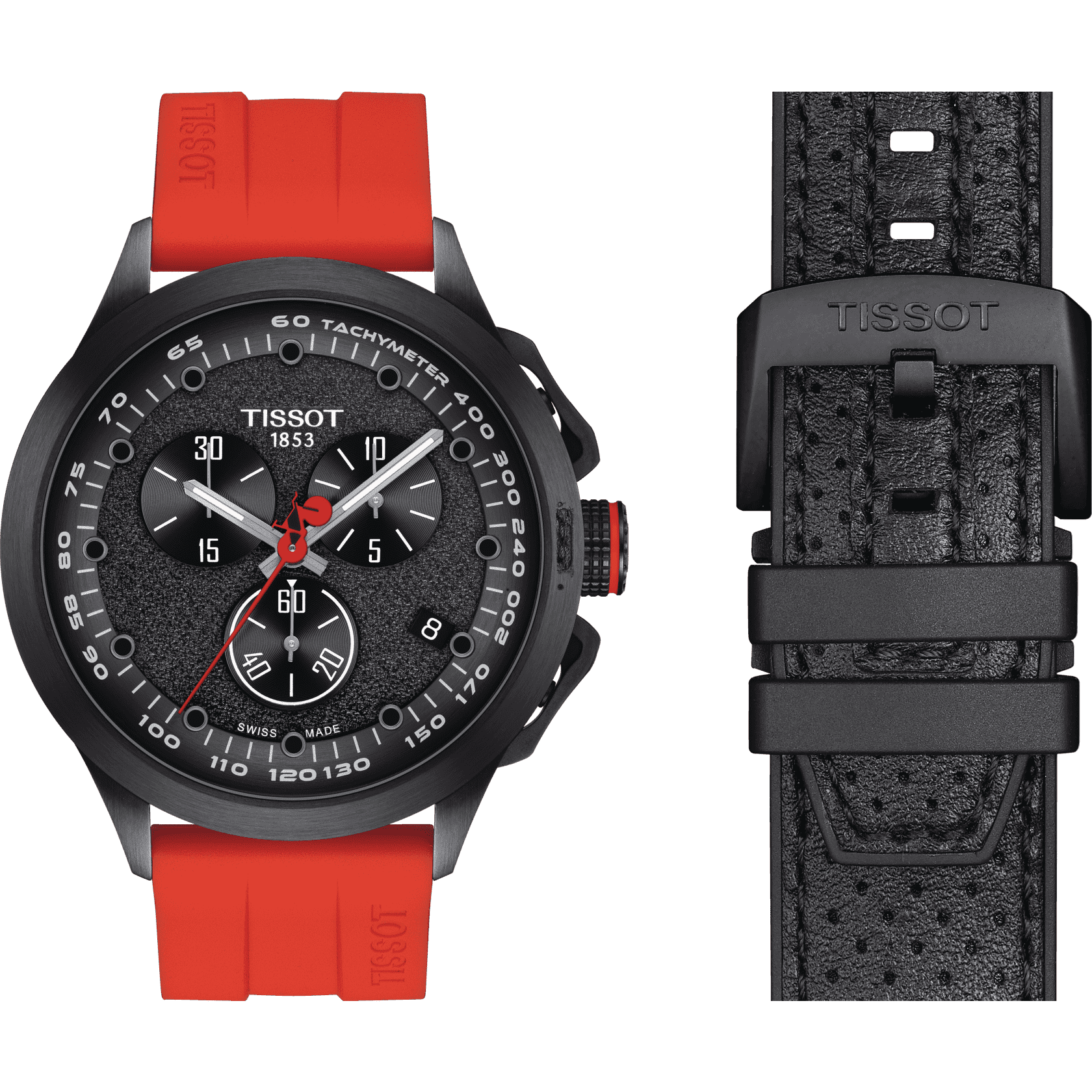 Celebra i campioni del ciclismo con il Tissot T-Race Cycling 2023 Vuelta Espana Edition, un orologio cronografo da 45 mm con un sorprendente quadrante nero. Sapientemente realizzato in Svizzera, questo orologio combina un design ispirato alle corse, audaci riferimenti rossi e la praticità di due cinturini intercambiabili: un cinturino in silicone e un elegante cinturino in pelle traforata. Con dettagli a tema bici come i pulsanti a forma di leva del freno e le lancette che rappresentano i raggi, questo segnatempo è un must per gli appassionati di ciclismo. Abbraccia l’emozione di La Vuelta, fai una dichiarazione e mostra la tua passione per l’emozionante mondo del ciclismo con questo straordinario orologio progettato per i veri appassionati di ciclismo.