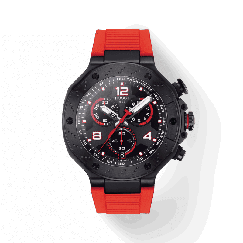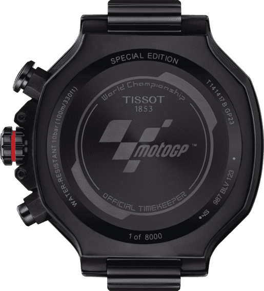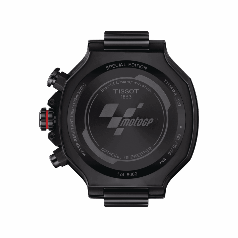 Le emozioni della MotoGP e la passione di Tissot non possono essere separate. Per onorare questa partnership, l’orologio T-Race MotoGP celebra l’emozione delle corse da sempre, e per il 2023 questo classico Tissot è stato dotato di una nuova serie di colori. Gli orologi sono realizzato con gli stessi dettagli e le stesse competenze condivise tra orologiai, meccanici e piloti.Direttamente ispirata a questo sport, il T-Race MotoGP Limited Edition 2023 è il luogo in cui la passione incontra l’innovazione, con dettagli meticolosi.Con un occhio sempre all’orologio, la precisione è il terreno comune con i piloti della MotoGP.Grandi numeri arabi rossi sul quadrante: cifre grandi e visibili come i numeri delle corse motociclistiche, mentre i dettagli rossi appariscenti danno l’idea della velocità;logo MotoGP inciso sul fondello e cronografi ispirati al tachimetro. Sulla lunetta sono presenti il disco del freno e il calibro, i pulsanti sono ispirati ai manubri e sul lato della cassa sono raffigurate le alette di raffreddamento del motore. Orologio venduto in una confezione a forma di caso da moto.