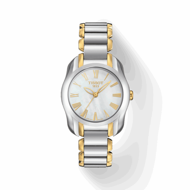 L’orologio Tissot T-Wave incarna femminilità e purezza con le sue linee armoniose, il quadrante in madreperla e le lancette a forma di petalo.