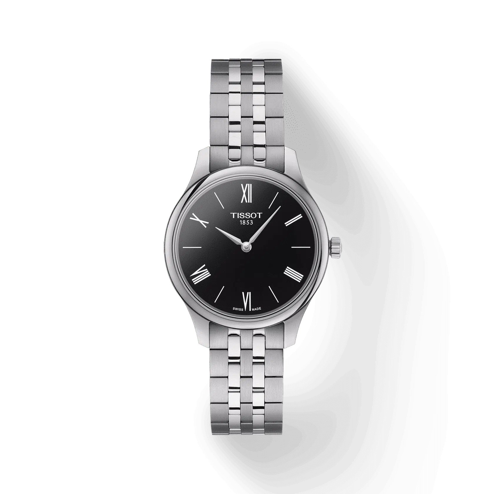 Questi nuovi modelli di Tissot Tradition 5.5 hanno una cassa di 31 mm con un quadrante composto da 2 lancette e indici romani. Uno spessore sottile di 5,50 mm, amplifica la purezza e sottolinea l’eleganza della tradizione Tissot