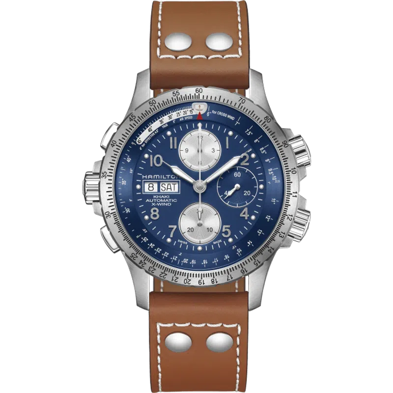 Progettato per i piloti e costruito per l’avventura, il Khaki Aviation X-Wind Day Date Autochrono vola attraverso i venti trasversali in una nuova audace veste. Caratterizzato da un accattivante quadrante blu, una lunetta girevole interna e una riserva di carica di 60 ore, questo segnatempo ad alte prestazioni è animato dal movimento H-21 ed è pensato per chi osa navigare nelle avventure della vita con precisione e stile.