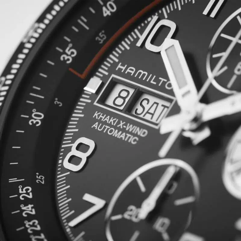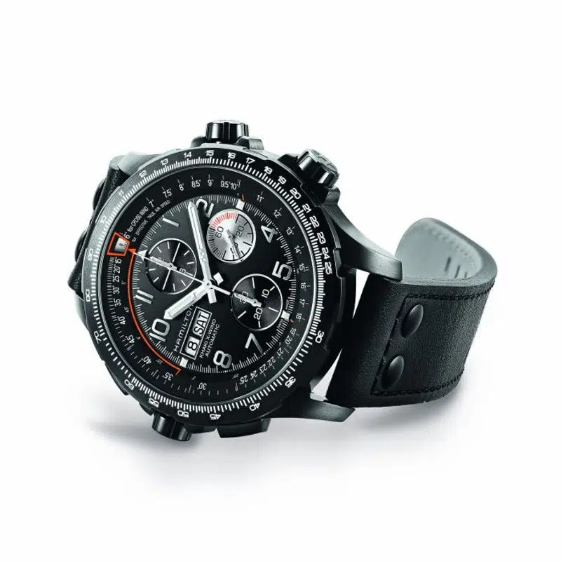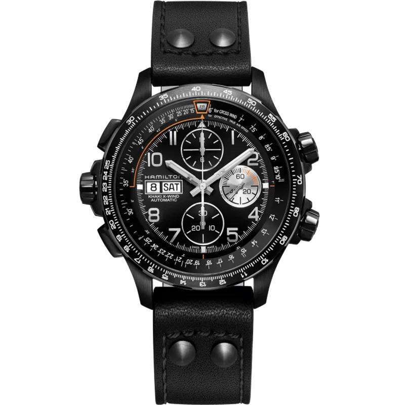 Innovazione, avventura e precisione: sono queste le caratteristiche di un segnatempo ricercate dai piloti di aerei e da sempre presenti nelle creazioni Hamilton. Il Khaki X-Wind è il primo orologio a custodire al suo interno il calcolatore dell’angolo di deriva, dispositivo che consente di misurare con precisione i venti trasversali e i loro effetti sulla traiettoria degli aerei. Il design tecnico e il movimento automatico sono particolarmente apprezzati anche sulla terraferma e trasformano il modello nel copilota ideale. L’effetto sorpresa di questo nuovo modello con cassa da 45mm è dato dal rivestimento in PVD nero.