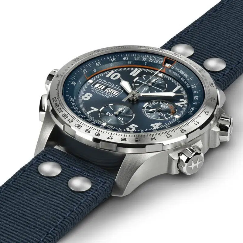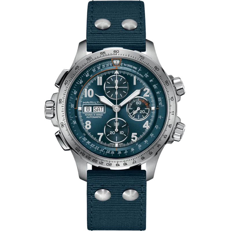 Progettato pensando ai piloti e costruito per le avventure in cielo, il Khaki Aviation X-Wind Automatic Chronograph vola attraverso i venti trasversali in una nuova veste audace, con motivi mimetici e nuove varianti di colore per quadrante, cinturino e cassa. Dotato di lunetta girevole interna e spirale in silicio anti-magnetica, questo modello ad elevate prestazioni mostra uno stile deciso e moderno.