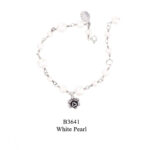 Bracciale in argento 925 con perle naturali crema e inserto pendente a forma di  Rosa..lo stile Yvone Christa.