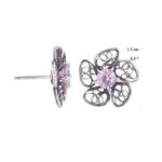Orecchini al lobo con tema floreale. Vi è una lavorazione in filigrana con zircone bianco centrale.