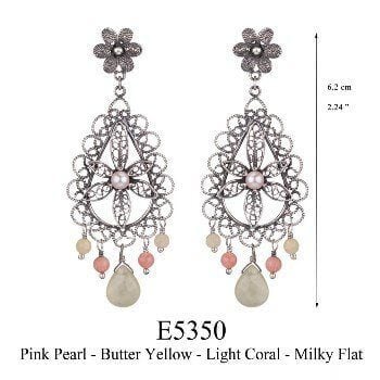 Questo modello della collezione Yvonne Christa lungo circa sei centimetri con perla centrale bianca e pietre pendenti con nuanches tra il rosa e il burro, attacco a bottone, rappresenta una nuovissima interpretazione floreale in filigrana…..stupendo…..esplosione della primavera