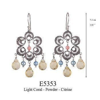 Nuovo orecchino nella numerosissima collezione Yvonne Christa. A forma di fiore e con chiusura ad amo, a disposizione immediata nella versione corallo rosa piccolo centrale e tre gocce di quarzo cherry alternato a perle di acqua dolce argento.